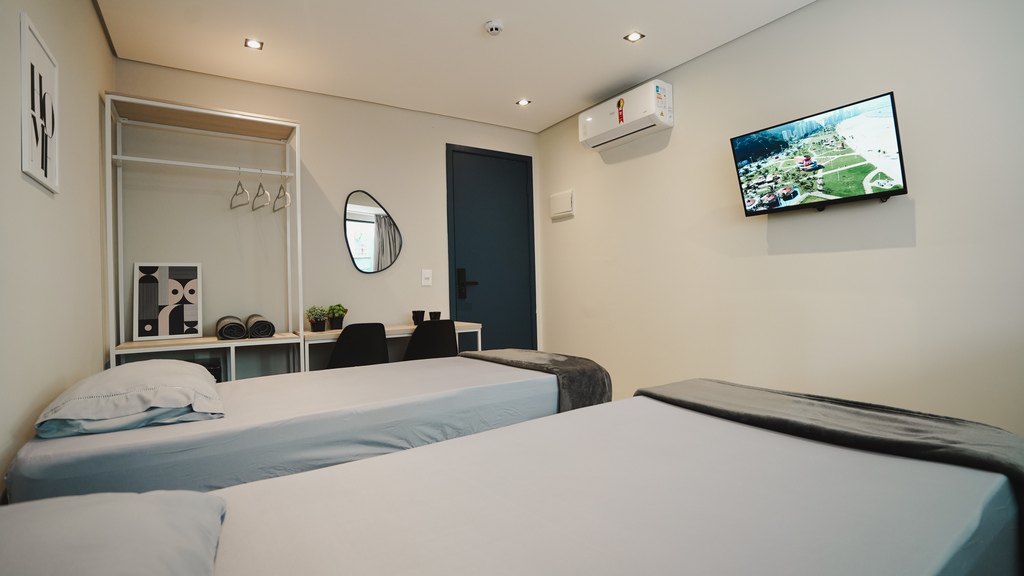 Studio privativo de 14 m² • acomoda 4 pessoas • 2 camas de casal