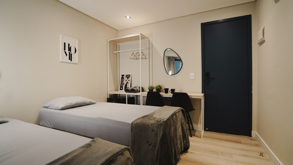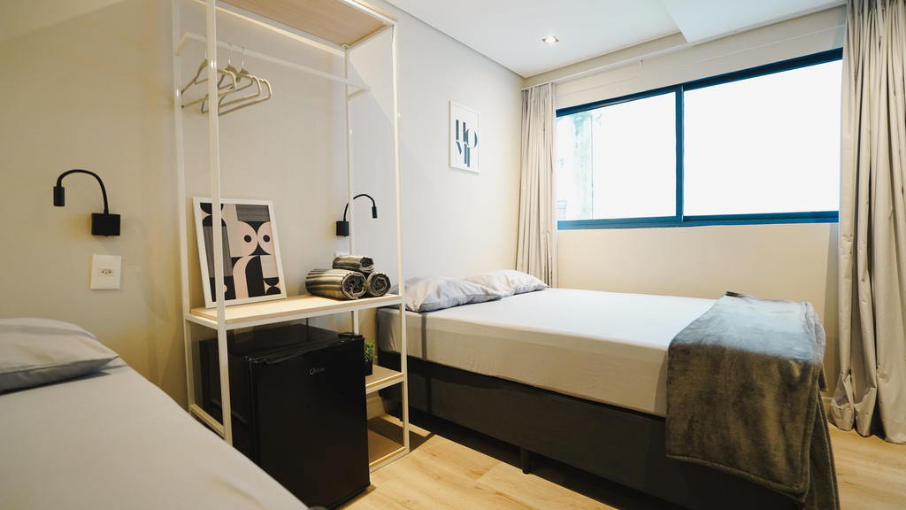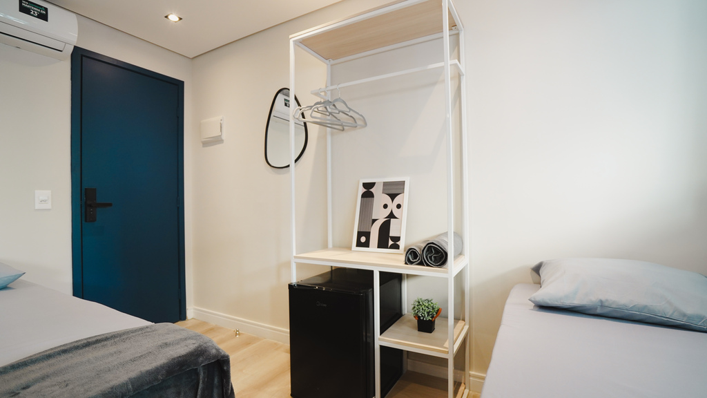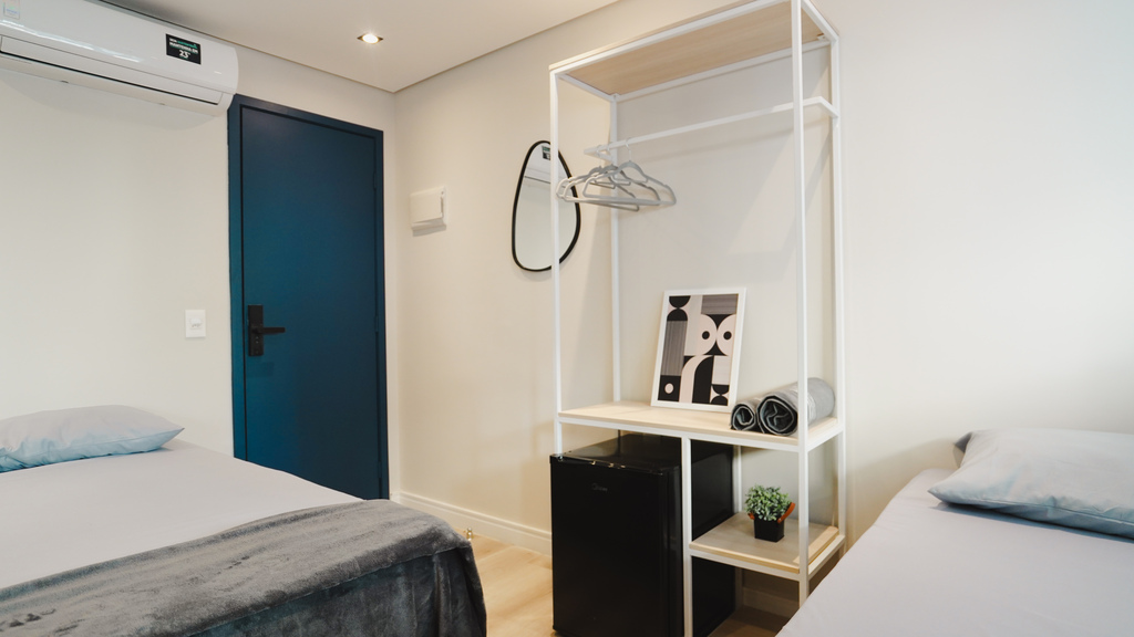 banheiro compartilhado • wi-fi • frigobar • micro-ondas • ar condicionado • estacionamento pago no local • roupa de cama e banho • não aceita animais de estimação • recepção remota • não aceita crianças