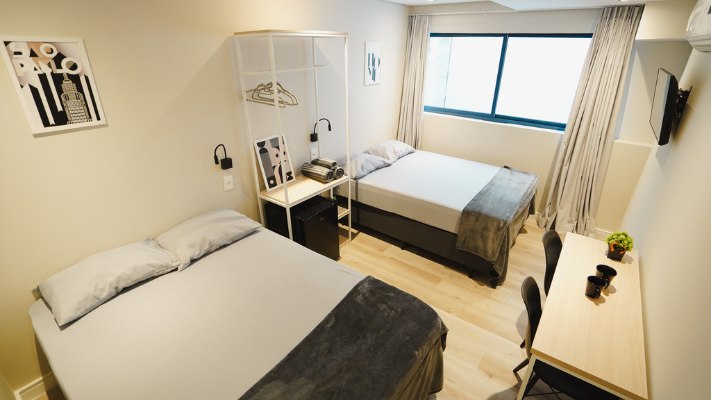 Studio privativo de 14m² • acomoda 4 pessoas • 2 camas de casal
